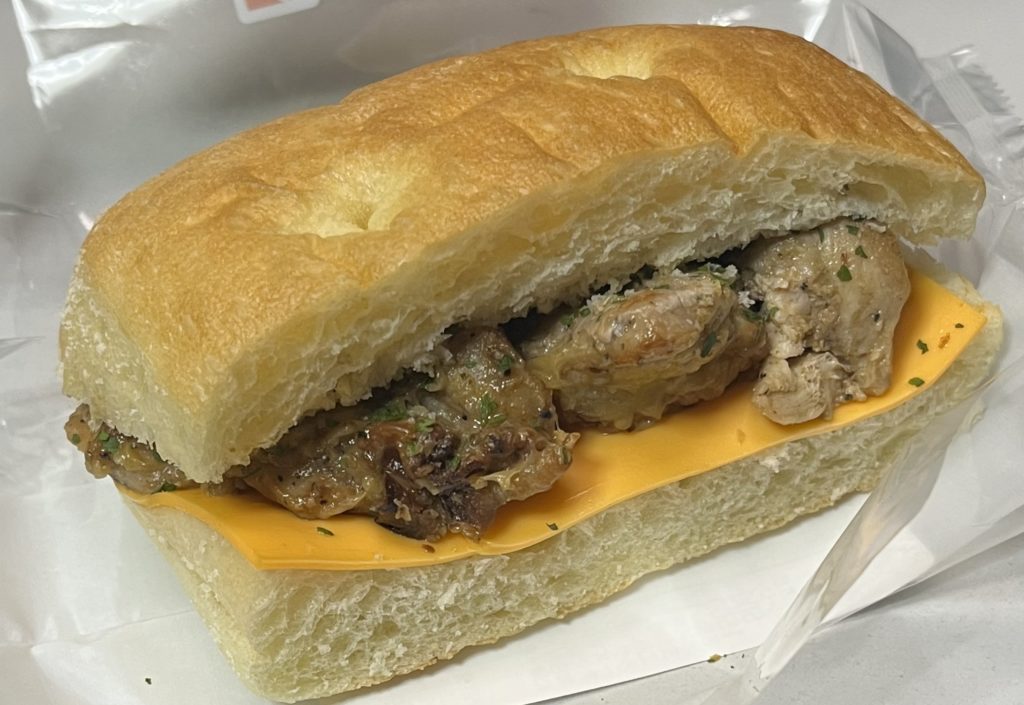 ●原材料名:鶏肉(タイ)、パン、チーズ、トマト加工品、玉ねぎ、オリーブ、植物油脂、ケチャップ、食塩、澱粉加工品、酒、砂糖、チキンオイル、おろしにんにく、バタールウ、ブイヨン、胡椒、パセリ、オレガノ、ローレル、ローズマリー、バジル、にんにく粉末/糊料(加工澱粉)、乳化剤、調味料(アミノ酸等)、加工澱粉、pH調整剤、着色料(カロチノイド)、V.C、グルコン酸鉄、(一部に卵・乳成分・小麦・大豆・鶏肉、ゼラチンを含む)