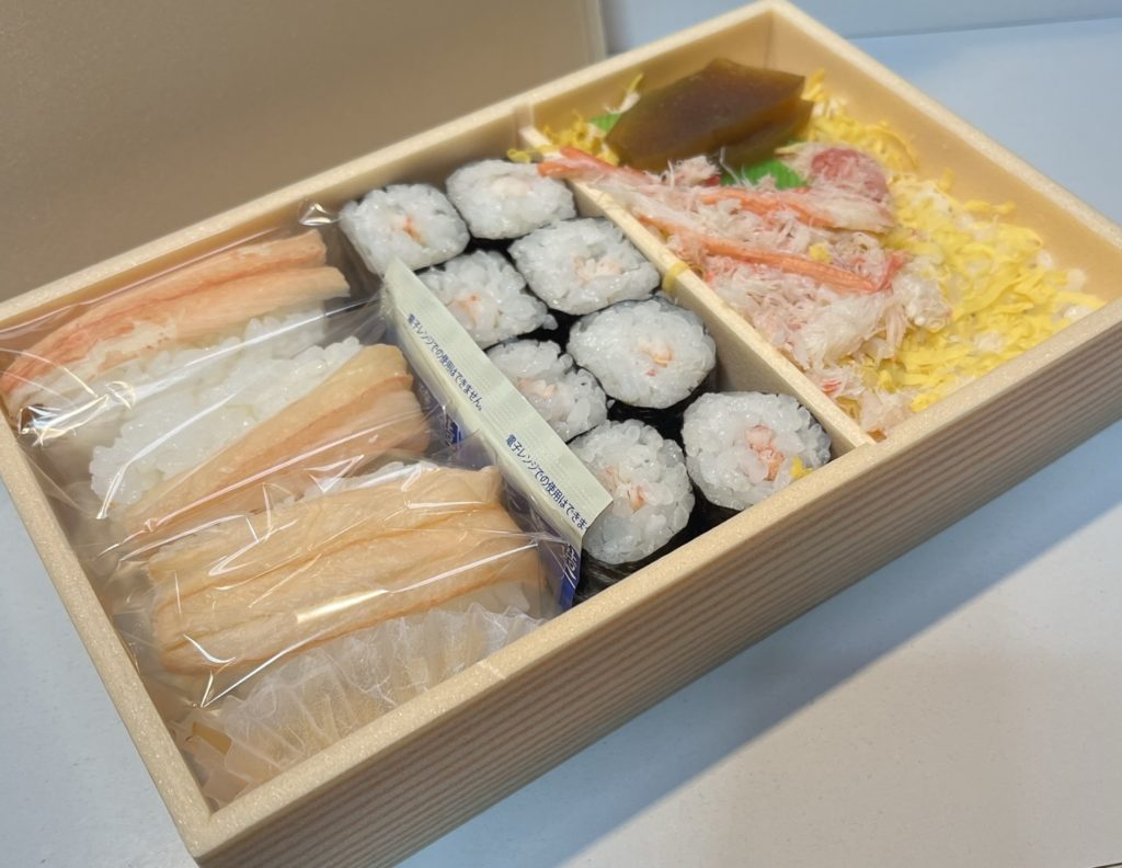 にぎり、細巻、ちらしの、かに三昧な駅弁。