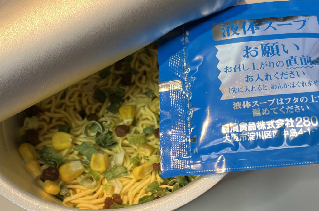 具があらかじめカップに入っているのですが、カップヌードルのそれよりも明らかに少ないです(苦笑)