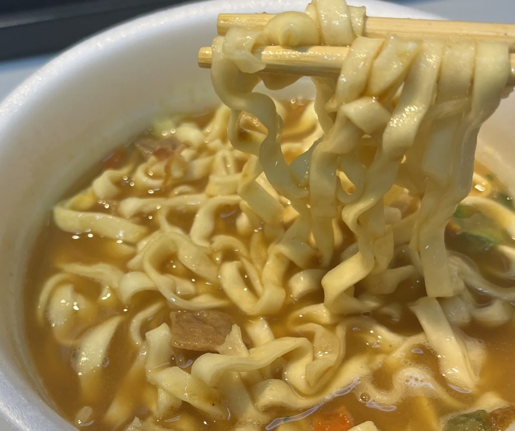 適度なとろみとスパイシーなカレースープが麺にからみ、満足度の高い一品。