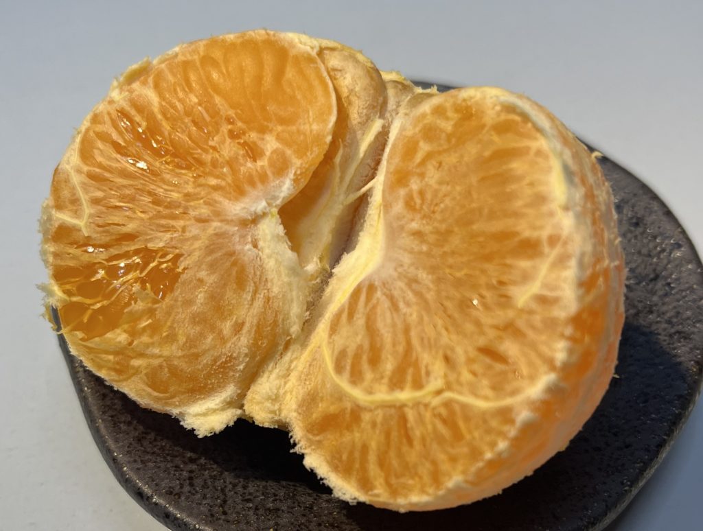 こちらは「はっさく」と「温州みかん」をかけあわせたような感じで、ざっくり食感とすっきりとした味わいがとても心地よい逸品でありました。