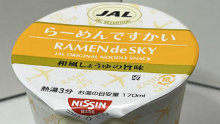 JALの機内食で提供されているという「そば」。お湯をたったの170ml注いで3分待てば出来上がり♪そば。どん兵衛とはまた違った食感と風味。